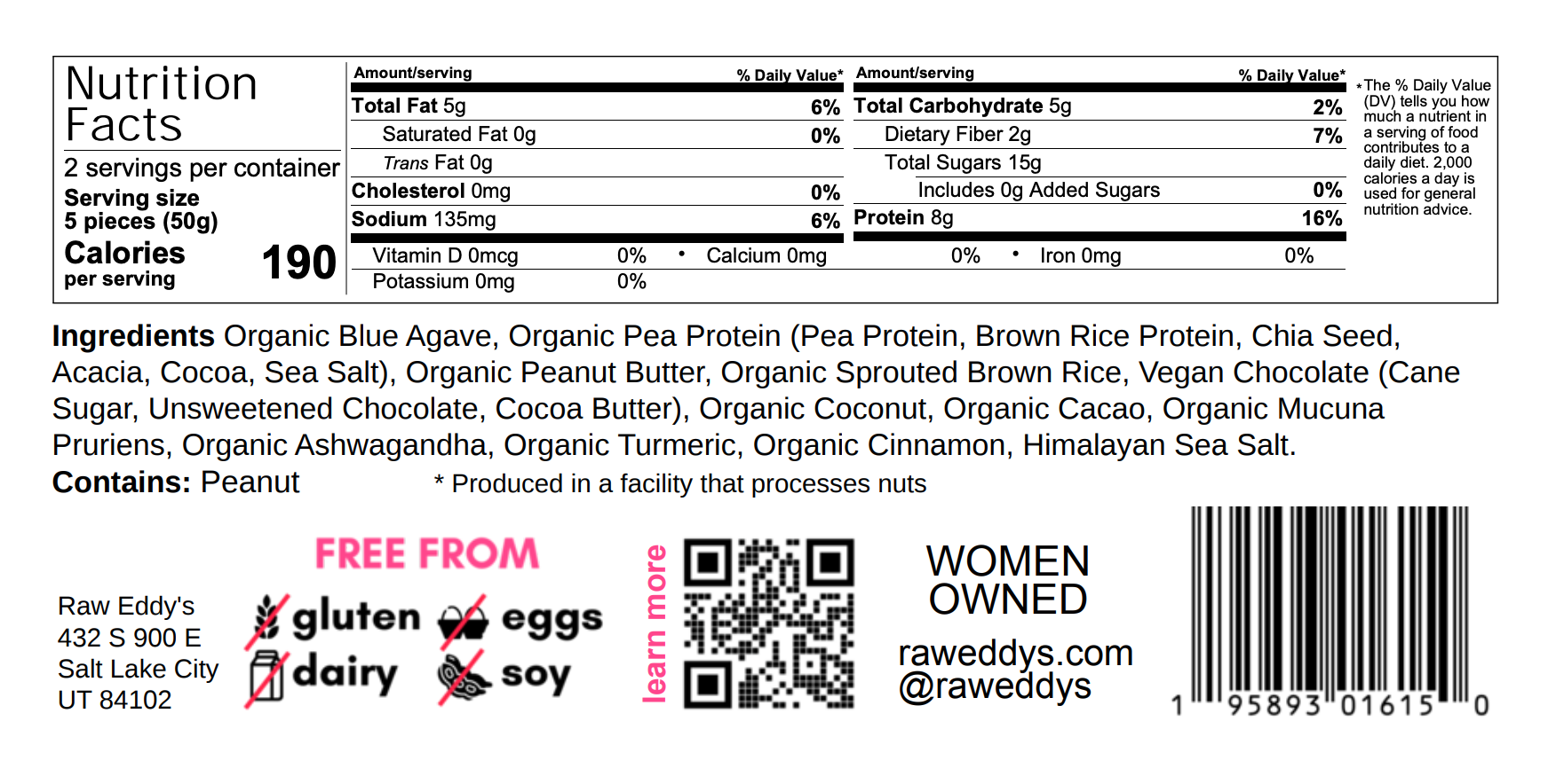 We started eating Raw Eddy’s after finding them at a farmers market. They’re very fresh and healthy. Our grandson comes and wants a ‘cookie’. We don’t feel guilty giving him these. They got harder to find and so I started a subscription. Love the convenience of delivery. Love supporting local!